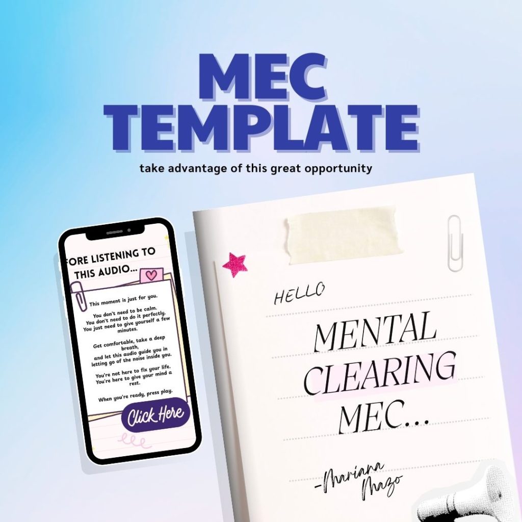 You will have immediate access to a practical MEC Mind Clearing template, designed to help you clear your mind and reduce stress at any time of the day, without having to depend on schedules or live sessions.